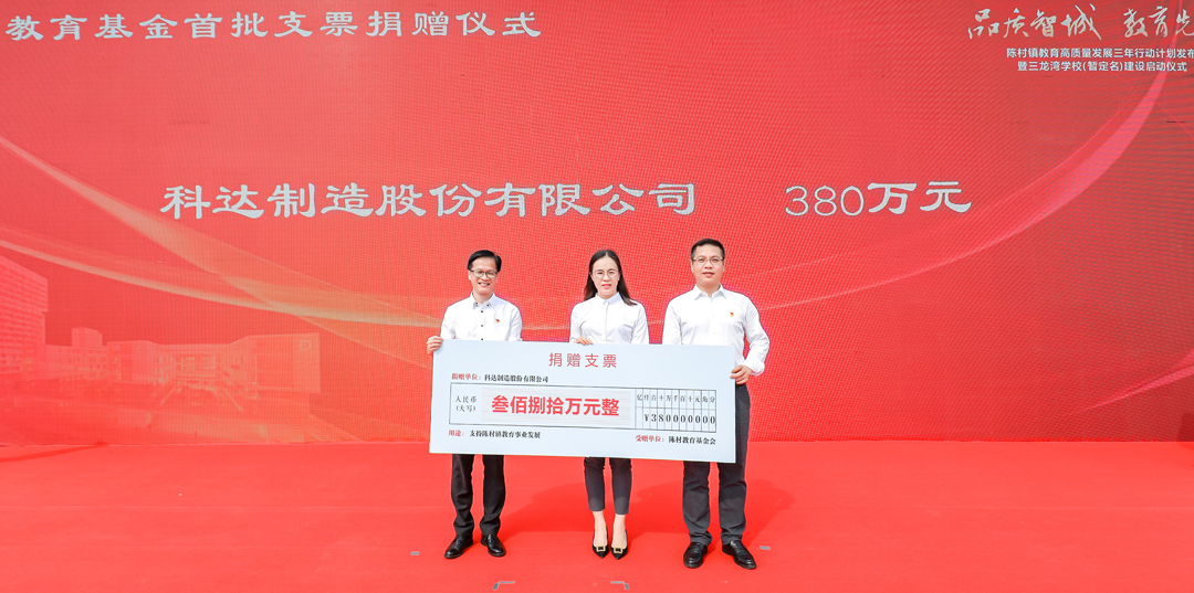 爱游戏ayx官方网页捐赠380万元支持陈村教育