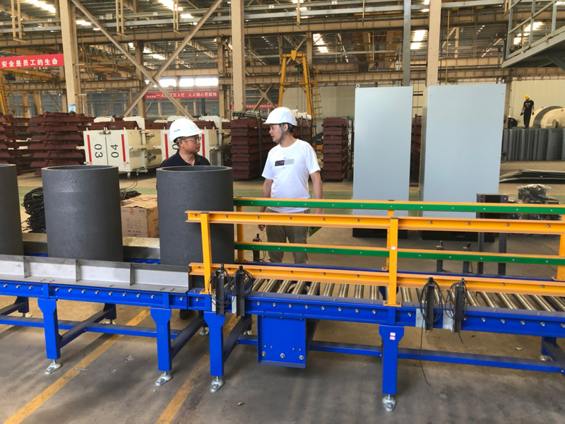 安徽爱游戏(中国)锂电装备的自动装埚系统,通过自动化控制系统实现自动揭盖加盖、吸料、转运、装埚一体化的自动化生产线,主要应用于隧道窑、石墨化装出埚工序。该装置具有以下特点:(1)设备通过螺旋挤压、底部高频低幅的振动方式,物料装填密度可达到振实密度的90%;(2)系统采用升降结构和负压锁料,装料过程中无扬尘及反冲,现场工作环境好;(3)各工序之间流转采用辊道运输、激光感应的方式,精度高、自动化程度高,坩埚精准定位于各工序之间;(4)为满足不同的客户需求,安徽爱游戏(中国)锂电装备设计有KDZG-2、KDZG-4、KDZG-6等多系列自动装埚机,装埚能力为1万吨~5万吨/年。