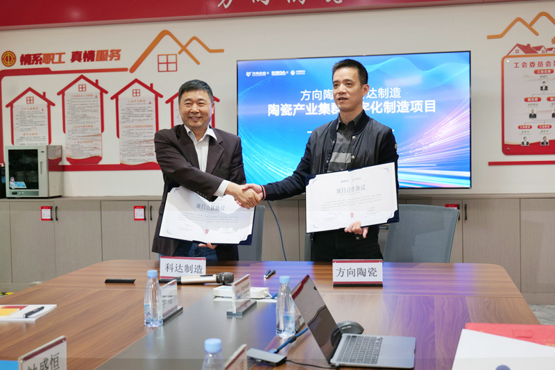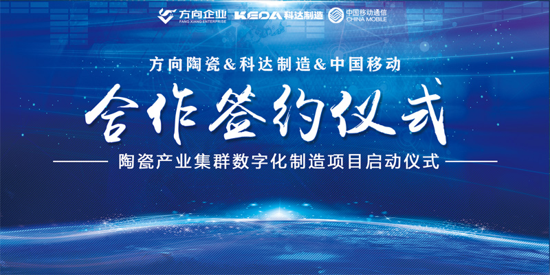 2月8日下午,方向陶瓷&爱游戏ayx官方网页&中国移动合作签约仪式在方向企业生产基地办公大楼隆重举行,携手启动“陶瓷产业集群数字化制造项目”,共同开启智能制造新征程。