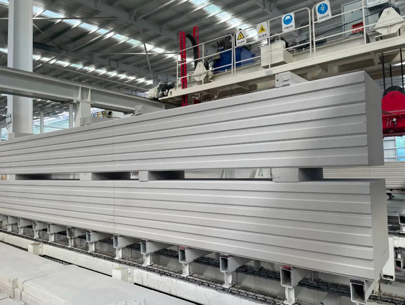 该项目采用复合双线设计,A线为6x1.2m大产能砌块生产线,B线为 7.5x1.2m纯板生产线,可批量生产超长板材和双拼公共建筑板或三拼建筑内墙板,满足仓储物流、酒店商场、民建住宅等各种装配式建筑需求,可适用于当前国内各种型号板材生产,据测算可达成最优成模率。