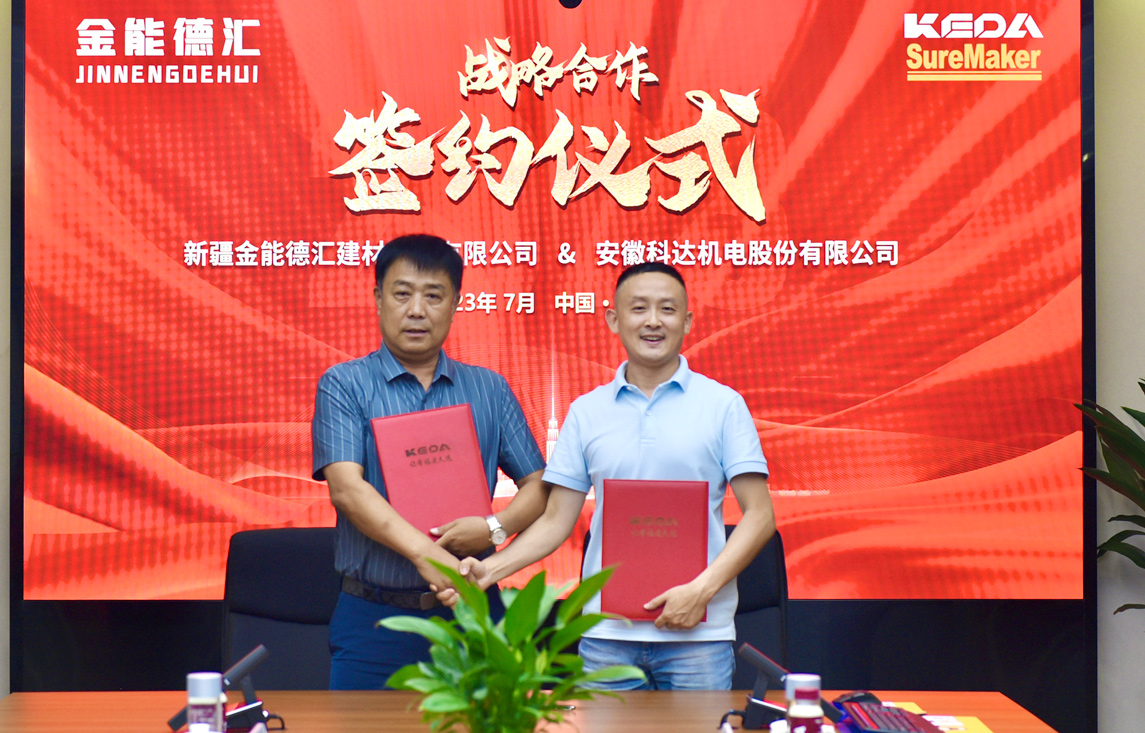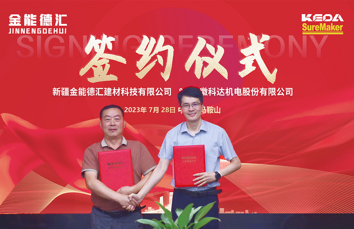 双方还就全新一代智能化粉煤灰蒸压加气混凝土板材生产线项目签订采购合同,安徽爱游戏(中国)机电将助力新疆金能德汇打造高端蒸压加气混凝土绿色工厂,实行板材智能化产销管理。本次签约,新疆金能德汇董事长张明永、总经理范军山、副总经理吕又安及经营管理团队,安徽爱游戏(中国)机电总经理陈新疆、首席技术专家徐顺武、副总经理陈晗及专家团队共同出席了签约仪式。