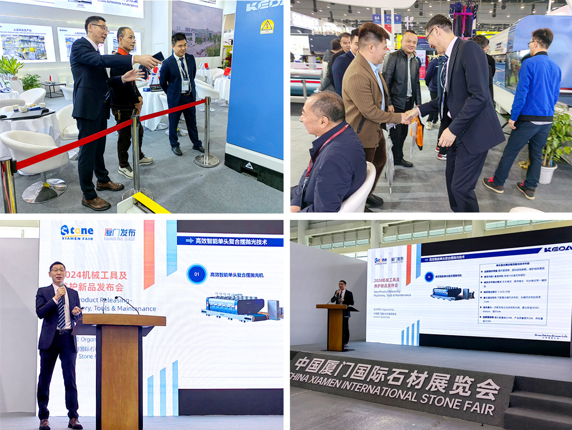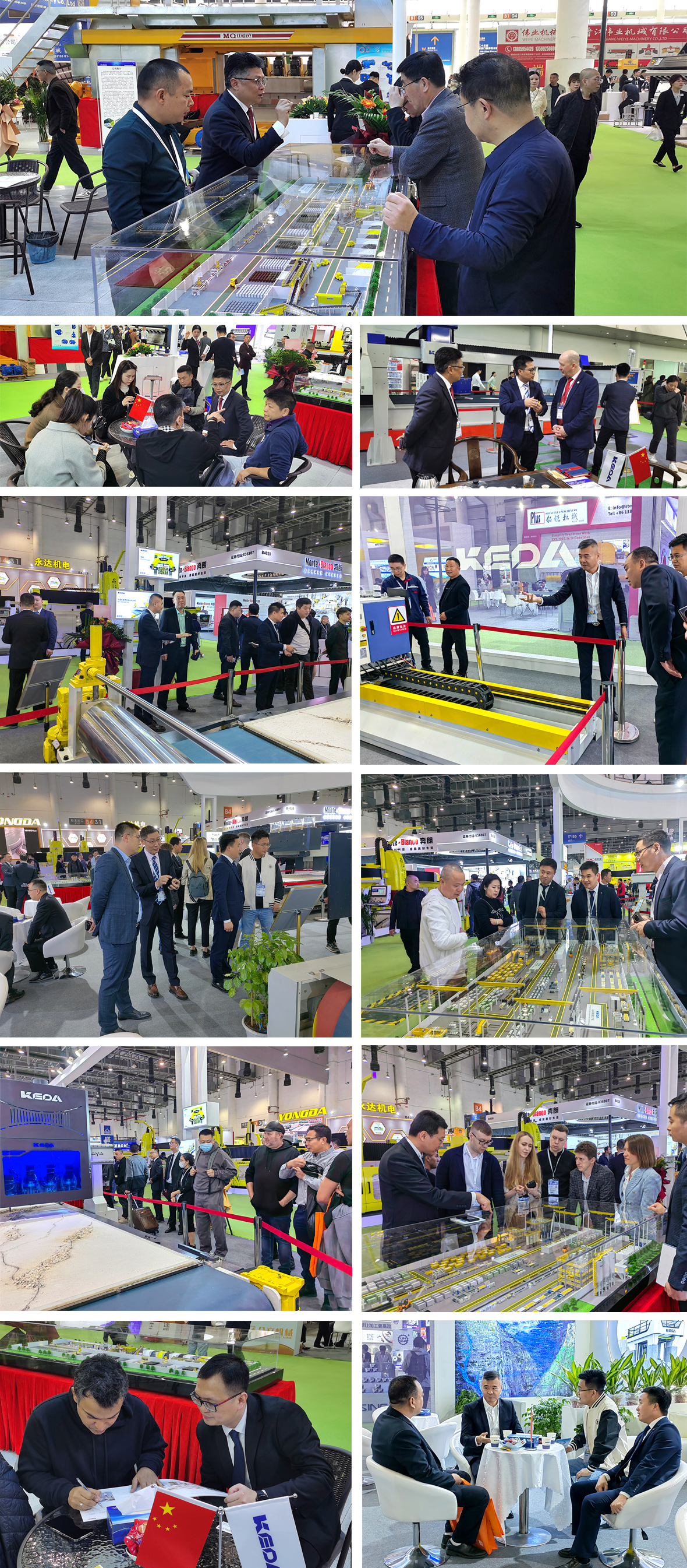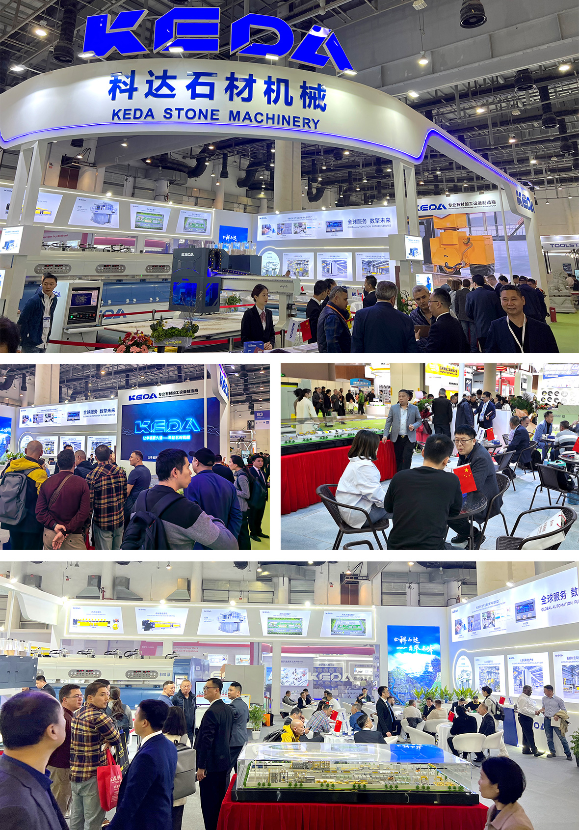 KDQI系列石英板智能纹理系统、多元摆动智能抛光机(机器人智能操作系统)以及石材柔性切割生产线等爱游戏(中国)石材机械的明星产品,在现场备受关注,吸引了众多行业客户、专业观众驻足询问并体验,成为现场的人气爆款之一。