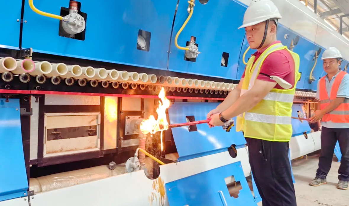 项目自2022年底启动前期筹备工作,期间克服超长雨季对施工的影响等重重困难,先于2024年6月15日上午11点18分实现K2线窑炉点火,随后经过紧张的调试工作,最终在30号成功出砖、实现投产。点火仪式当天,特福喀麦隆陶瓷总经理王浩然、厂长张顺、新项目筹建副厂长孙慎磊、新项目筹建中心项目主管陈刚,森大集团喀麦隆分公司总经理李广漠、喀麦隆卫品厂厂长尉京辉,以及特福喀麦隆陶瓷部分员工代表出席了活动。