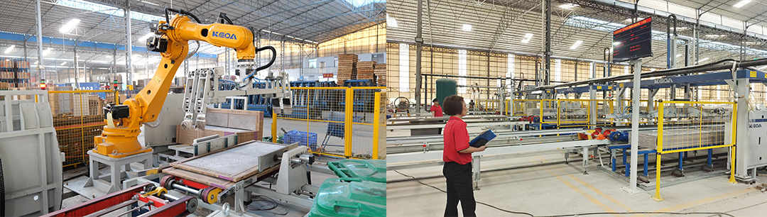 这两条包装线主要生产600×1200(mm)、750×1500(mm)、900×1800(mm)等规格的高端大板产品,整线速度稳定在10包/分钟以上,单线日产量超过27000m²,完全满足客户生产需求。