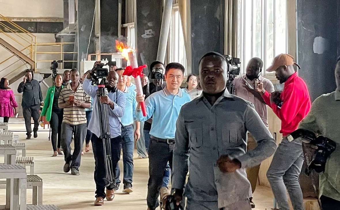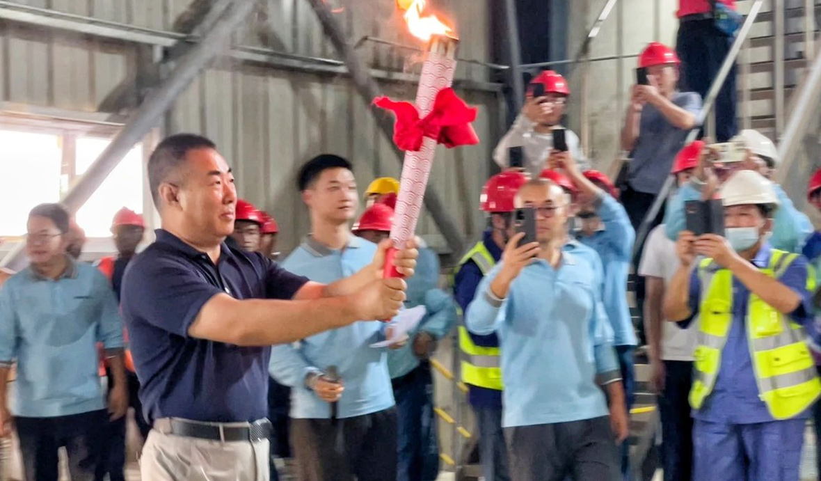 接着,点火仪式正式开始。玻璃厂点火所用的火种,是从坦桑尼亚陶瓷厂窑炉中取出并运送至玻璃厂,由坦桑尼亚陶瓷厂总经理唐俊亭及厂长傅伟亲手交接火炬,由森大五金业务部总经理郭怀明及坦桑贸易及快消代表谭盛伟传递,最终由玻璃厂总经理于善凯及厂长闫军杨接过火炬。这象征着特福国际在非洲业务的薪火相传,发展动力源源不断,汇聚了无数的特福人的努力才成就今日遍布非洲的坚实足迹。