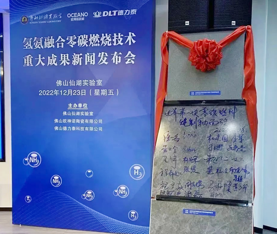 2022年12月18日,首批“零碳瓷砖”在欧神诺试验中心的“氨燃料陶瓷辊道窑”成功烧制。2023年12月23日,“零碳烧成陶瓷砖中试生产应用示范项目”通过科技成果鉴定,整体技术达到国际先进水平,其中“陶瓷辊道窑纯氨燃烧技术”达到国际领先水平。