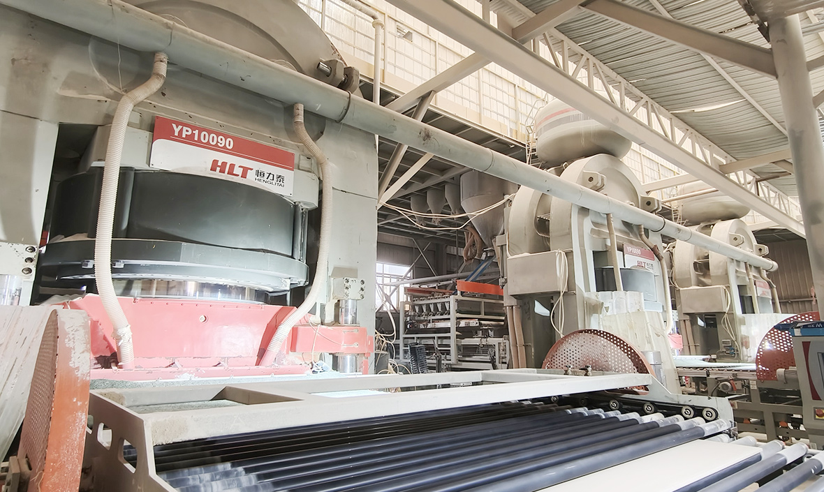 力泰陶机营销二部总监旷国军指出,恒力泰YP10090万吨压机是以智能发展为导向的创新成果,是高标准、严要求的环境友好机型,其优势就在于性能最优化、低损耗、高成品率,可以压制厚度3-30mm的墙地砖、大规格薄板(砖)、抛釉砖、(通体)大理石瓷砖等产品,涵盖了600×1200mm、750×1500mm、800×800mm、900×900mm、900×1800mm、1000×1000mm、1200×1200mm、800×2000mm等各种规格。
