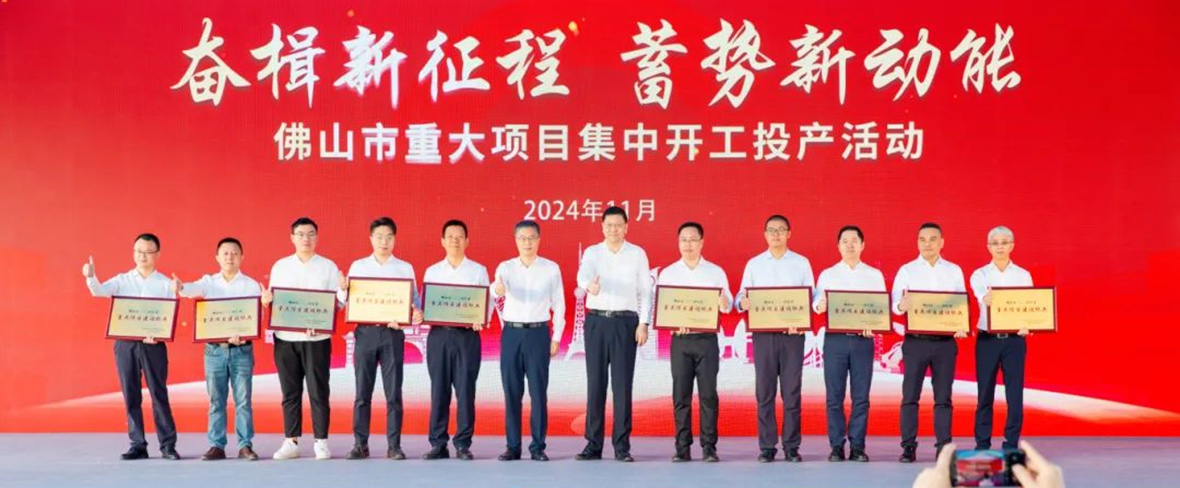 ▲11月18日,在佛山市重大项目集中开工投产活动现场,项目荣获2024年重点建设红榜项目单位称号并上台接受授牌,左二为项目代表。