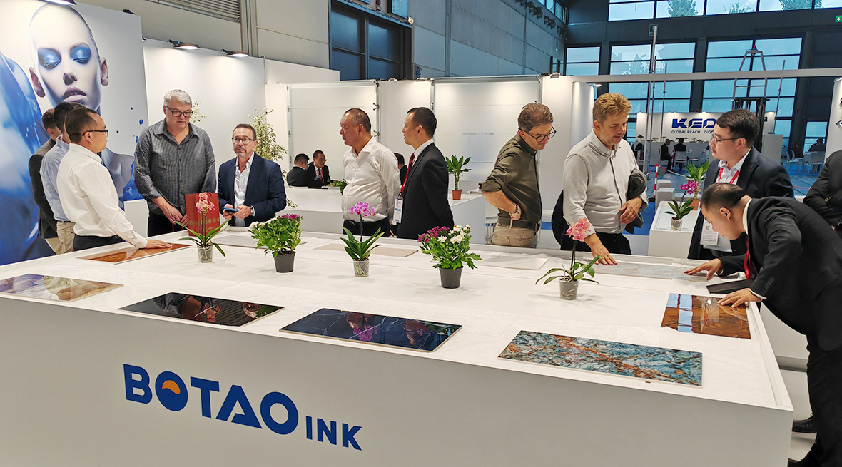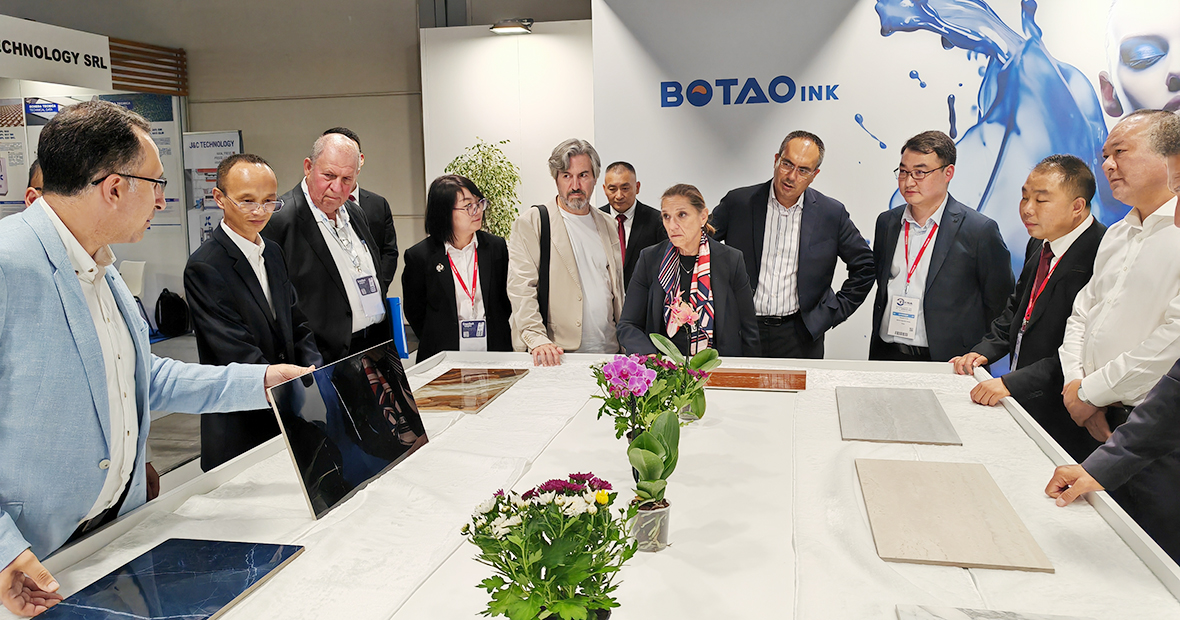 伯陶墨水自2011年研制问世以来,经过十多年的技术沉淀,产品、工艺已达到欧洲一线品牌的水平。在欧洲、美洲、印度等欧洲墨水品牌深耕的区域,伯陶墨水凭借技术的持续追赶与服务的快速响应,逐渐从市场的追随者成长为有实力的竞争者。为进一步缩小与欧洲一线品牌在产品“定制化”服务上的差距,广东康立泰于2024年推出了“工艺输出”的定制化解决方案,涵盖设计、釉面效果的全套产品解决方案,让客户更省心、省事、省钱。