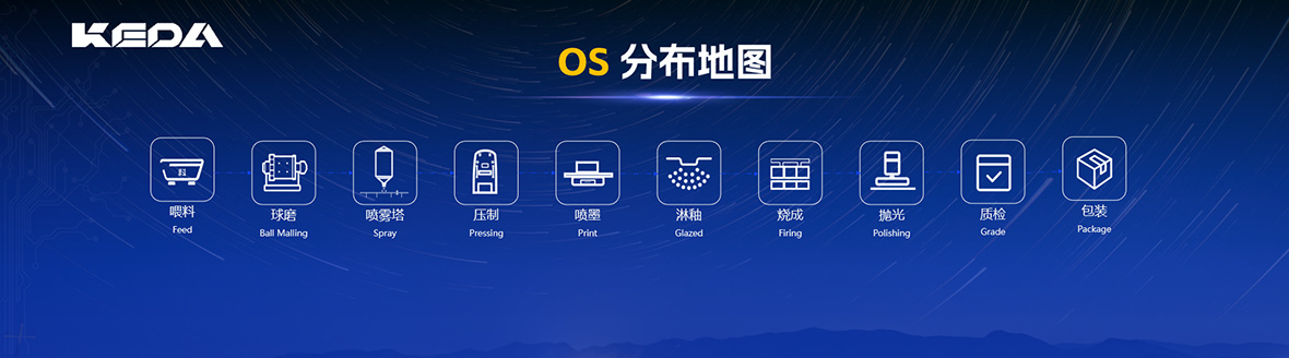首先,爱游戏(中国)OS操作系统可实现全流程覆盖。可配备于喂料机、球磨机、喷雾塔、压机、喷墨机、淋釉机、窑炉、抛光机、磨边机、质检机、包装机等陶瓷生产全流程的每一台关键单机设备,让每一台机器都完成数字化。