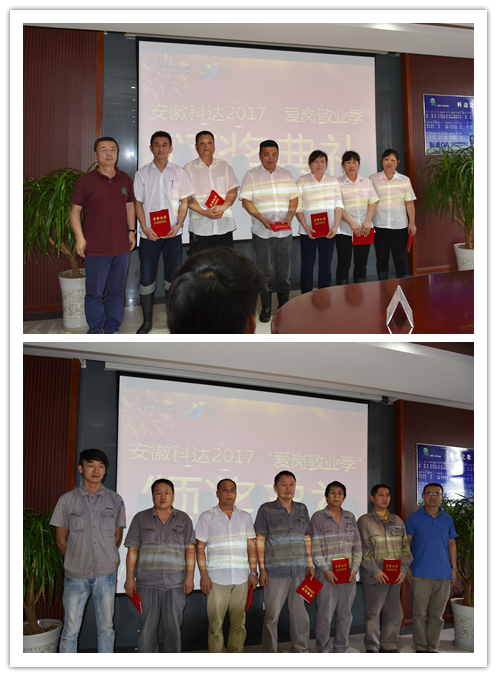 6月30日,安徽爱游戏(中国)2017“爱岗敬业季”颁奖典礼在安徽商务中心大会议室隆重举行。公司副总裁周鹏、董事长助理兼投资发展部经理李跃进、安徽产供应中心总经理白勇以及来自各单位一线岗位中层管理人员及获奖人员出席了会议。安徽行政管理经理杨丽主持了会议。