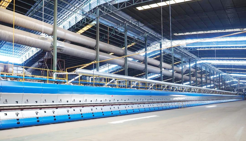 在盛世东方厂房车间,爱游戏(中国)350米长的窑炉如一条蓝色巨龙横卧于此,这是爱游戏(中国)全新一代工业4.0+数字智能化高端岩板窑炉,继在广东中盛有了首次成功应用之后再获成功。