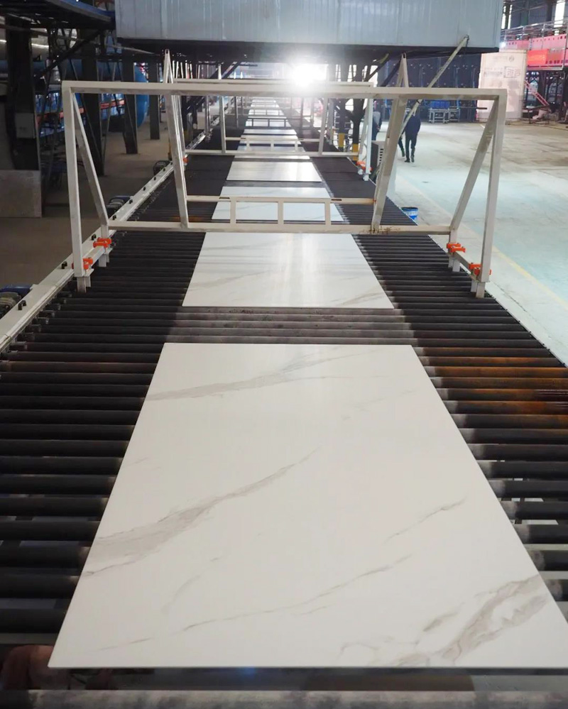 在盛世东方1200×2400(mm)高端智能岩板生产线上,恒力泰YP16890压机、爱游戏(中国)最新工业4.0+数字智能化高端岩板窑炉、七层节能(全余热)干燥器、窑后全线储砖系统、数控陶瓷大板岩板抛光生产线、大板全兼容自动包装线悉数登场,为盛世东方贡献了高质量的岩板新品。
