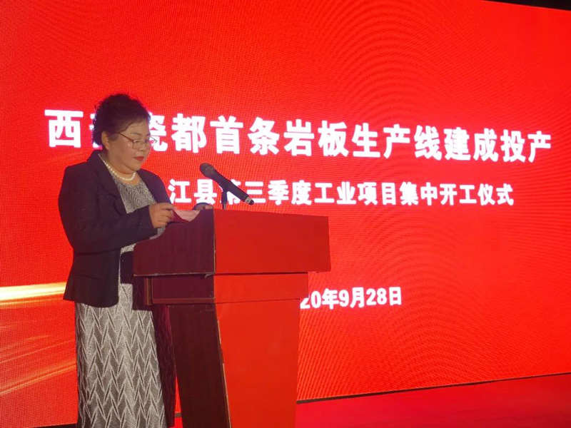 “2020年公司产品实现转型升级,全面淘汰原有1条高耗能低产能的内墙砖生产线,并引进国际先进技术装备与健康材料,开发顺应新时代的新型板材,快速筹建4条工业智能制造4.0岩板生产线。9月初,我公司首条1200×2400(mm)、800×2600(mm)岩板线全面顺利投产,随着我公司超薄大规格岩板生产线竣工点火,产品规格达1600×3200(mm),厚度3-6mm, 我们要打造西部超韧健康板材的领航企业。”方海琼在投产仪式上表示。
