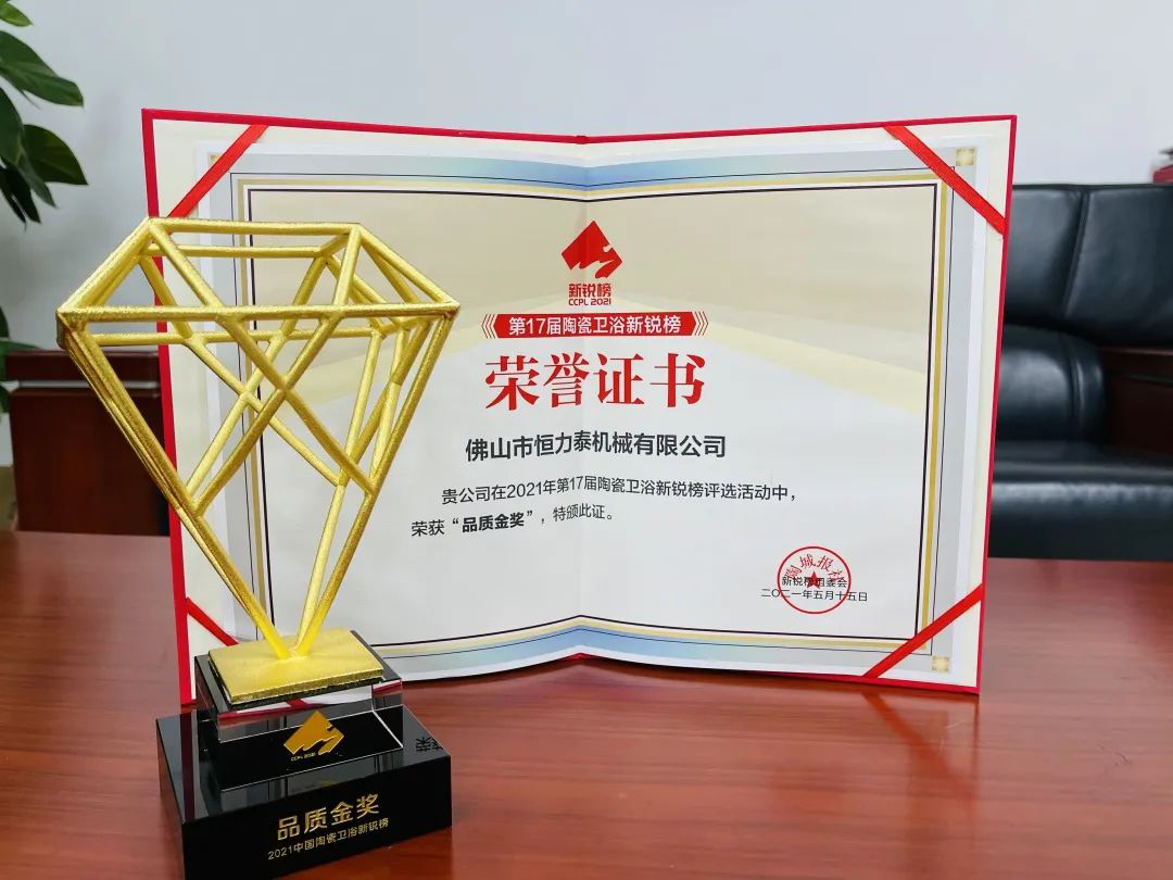 其热风冷却技术、独立控制排烟、防止窑顶落脏结构、冷却纵向均衡布管核心技术,不仅解决了快烧、预热升温、切割裂、落脏等方面在行业内的技术瓶颈,还使得能耗、走砖、温差、自动化、智能化等领域的技术再上新台阶,也为陶瓷企业的转型升级及健康发展带来革新优化方案,投入市场后赢得了客户一致好评。品质金奖——恒力泰