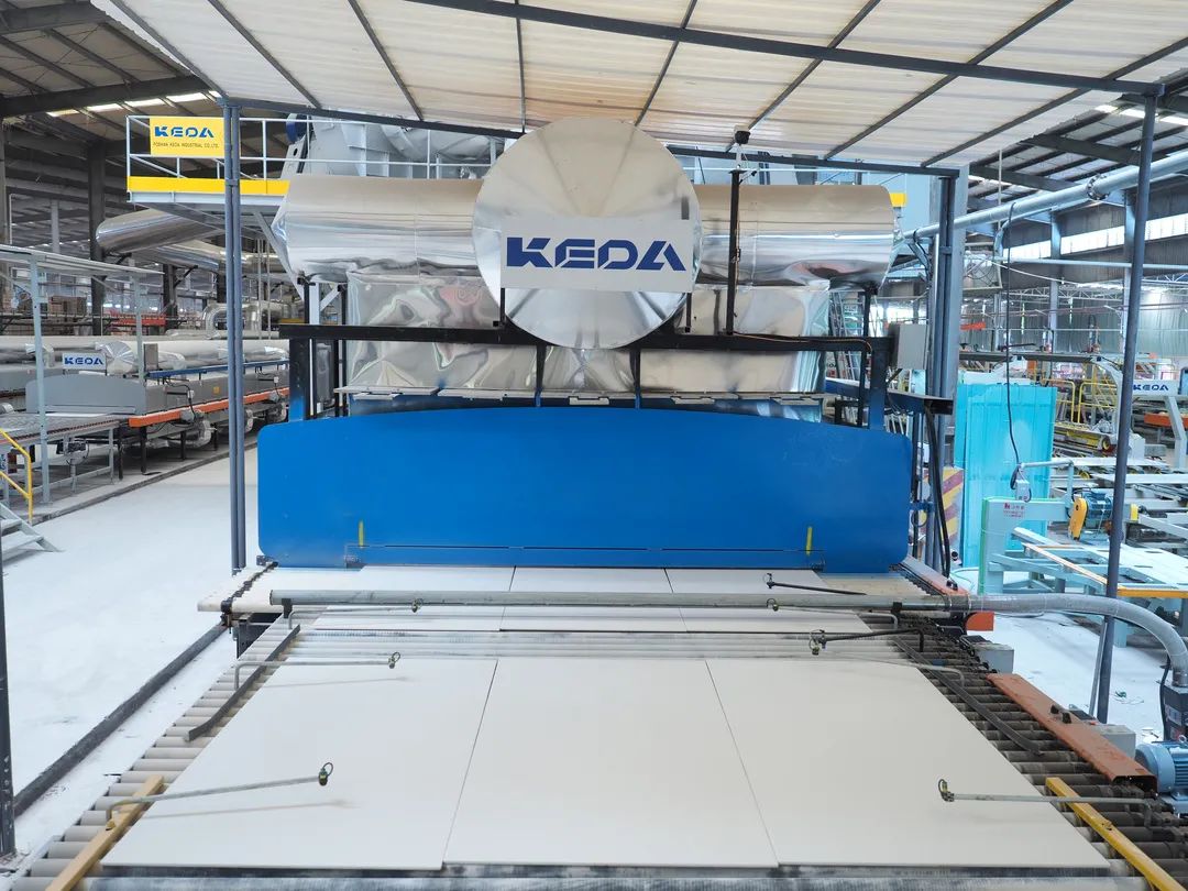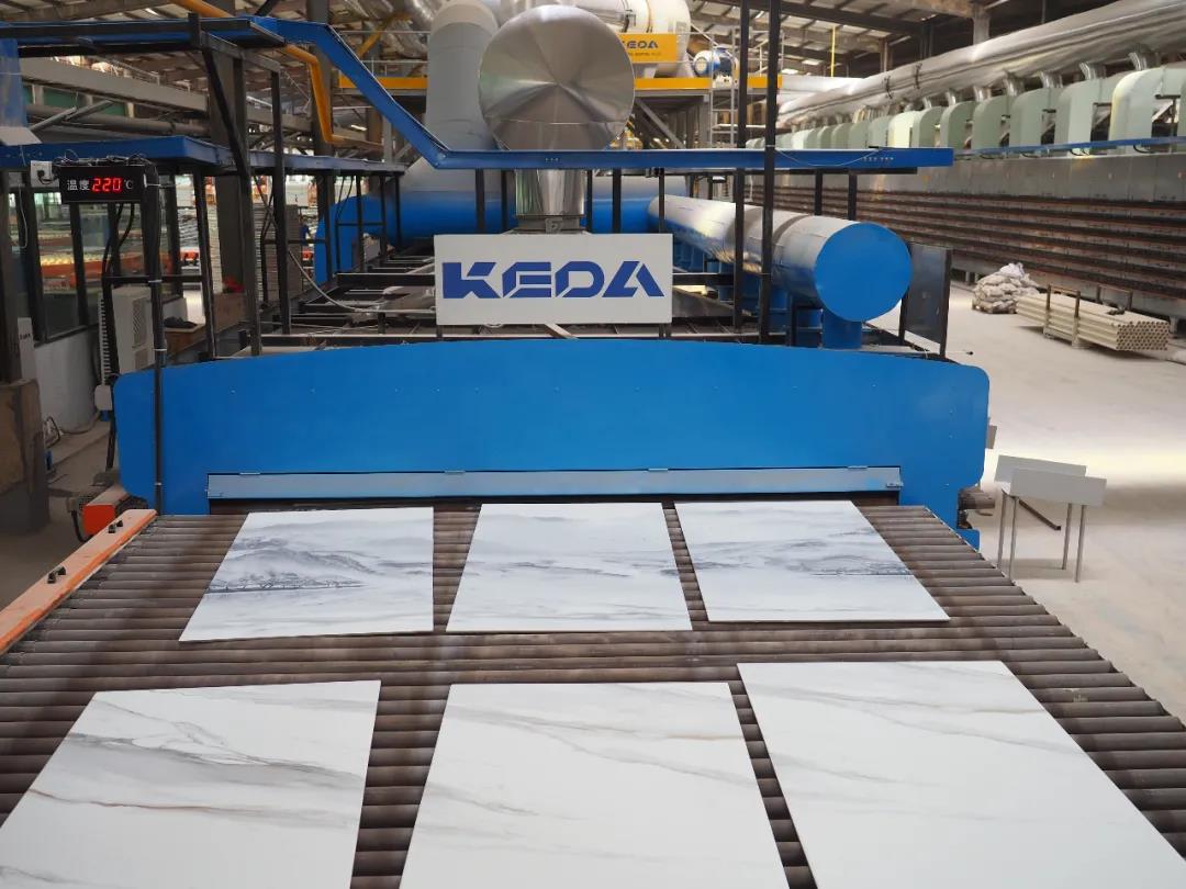 该线目前主要生产900×1800mm规格岩板,日产量30000㎡,可3片900×1800mm岩板同时进砖,此外还可生产800×2700mm、800×2000mm、750×1500mm、1200×2700mm,厚度9-11mm等多个规格的岩板。