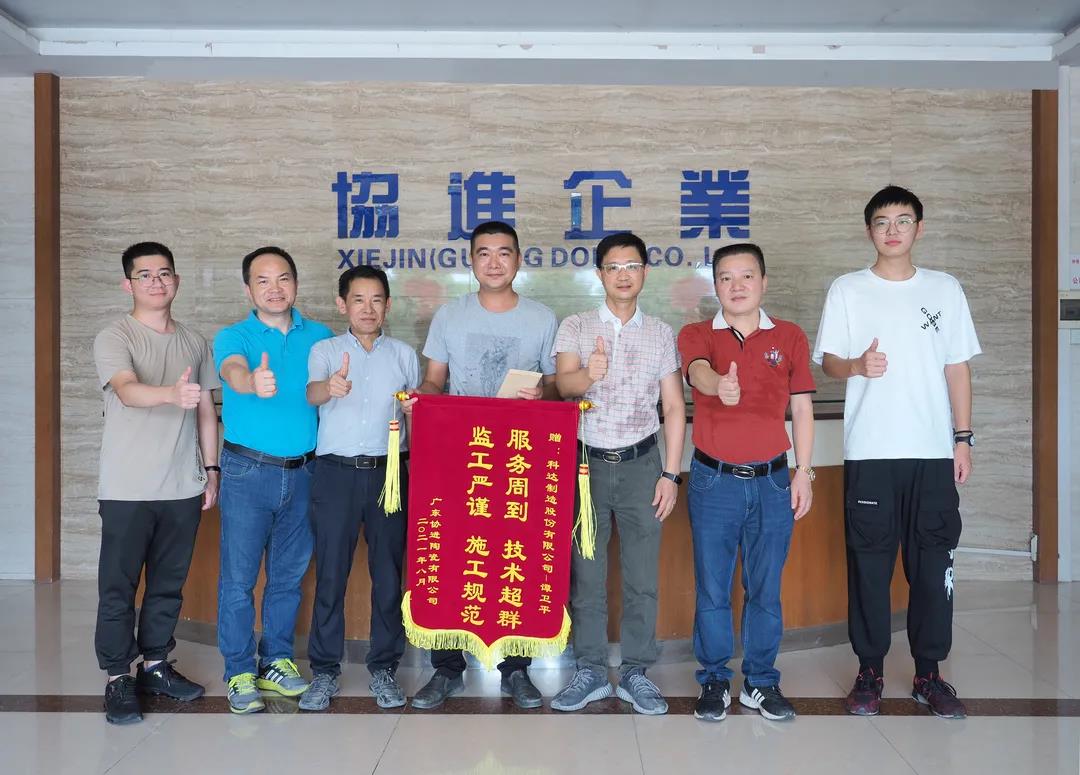 作为一条突破目前行业岩板产量天花板的生产线,协进极为重视,协进企业董事长王家伟、总经理王辉煌多次到现场指导工作,爱游戏(中国)项目施工团队与时间赛跑,精益施工,客户特制作锦旗、发放项目奖励以此表达对爱游戏(中国)项目施工团队的肯定与感激。