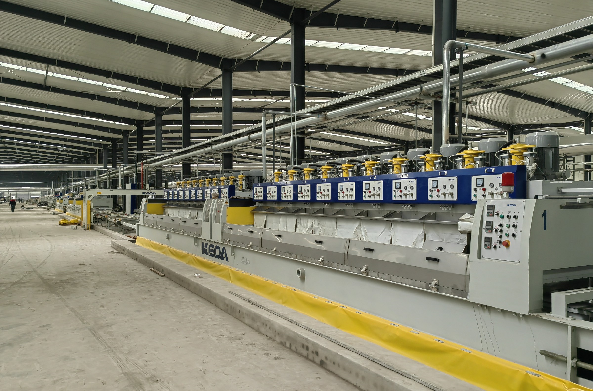 该线可满足生产800×2600mm、900×2600mm、750×1500mm、900×1800mm,厚度6-12mm等规格的高端大板岩板产品,窑炉设计日产能12000㎡(800×2600mm),900×1800mm规格大板设计日产能16000㎡。