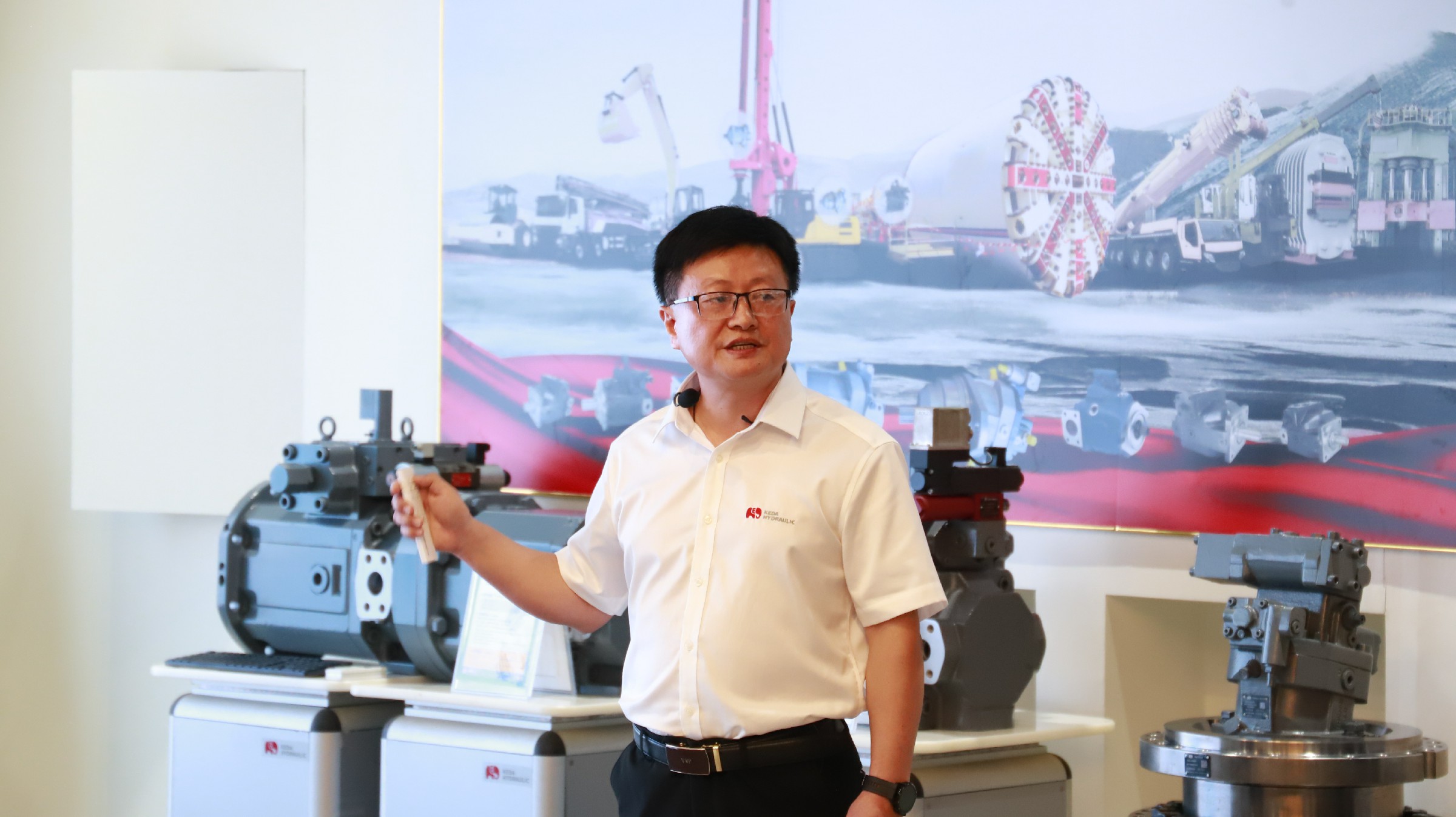 考察团一行参观了液压公司关键零部件柔性生产线、斜轴马达智能生产线(黑灯产线)、高压重载柱塞泵/斜轴马达智能装配生产线、精密件加工车间等数字化典型产线,爱游戏(中国)液压公司总经理杨军为考察团详细介绍了液压公司的数字化转型情况。