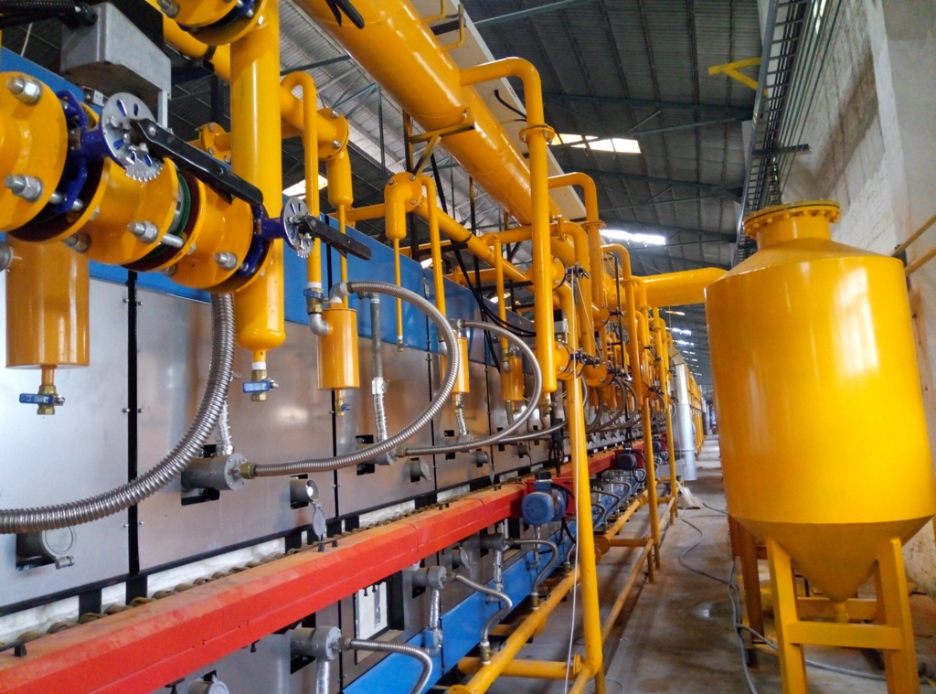 这次来德利公司新增两条高档抛釉砖生产线,经过多次考察和长时间悉心调研,最终花落力泰家族公司。该生产线配备了恒力泰公司最新的YP4009压机以及板材系列压机YP7509,两条DHD-EM5五层干燥窑(W3200/L53.2M)及两条DRK单层辊道窑(W2450/L283.5M),主要生产600*1200、800*800、800*1600、900*1800(mm)的抛釉砖,日产量12,000平方米。