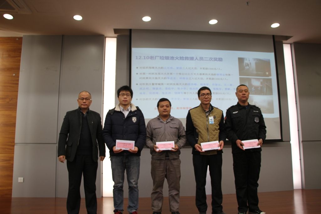 公司副总裁周鹏在表彰会结束后发表讲话,首先感谢各经营单位安全责任人对安消环工作的高度重视以及对本单位安消环工作问题客观分析和行动措施,并感谢各车间(部门)负责人、安全员在安全日常工作中所付出的努力,并充分相信2018年安消环工作能够更上台阶。同时,周总深刻指出了当前安消环工作存在的问题,并提出了工作要求: