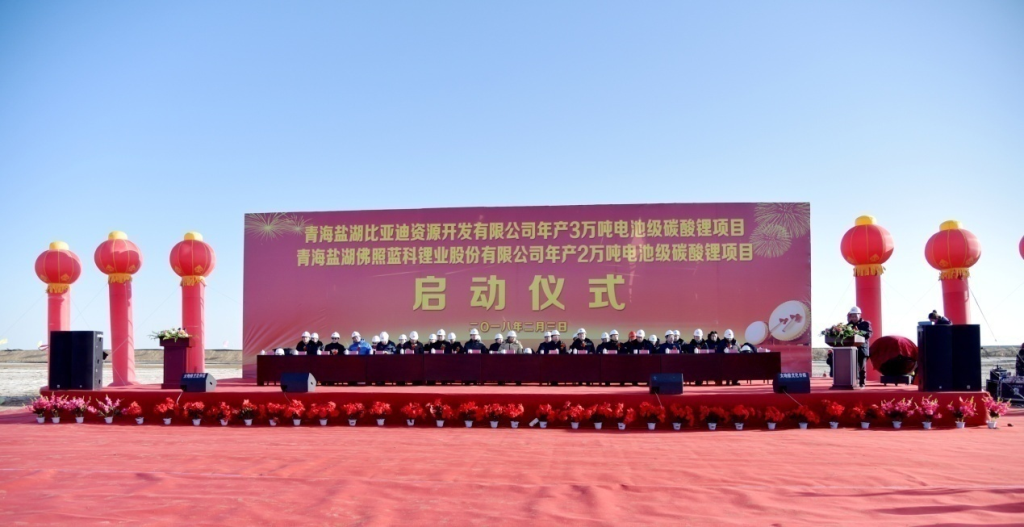 2月3日上午,广东爱游戏(中国)洁能股份有限公司重点建设项目——青海盐湖佛照蓝科锂业股份公司(一下简称“蓝科锂业”)2万吨电池级碳酸锂项目在青海格尔木蓝科锂业现场隆重举行启动仪式,正式开工建设,青海盐湖比亚迪资源开发有限公司3万吨电池级碳酸锂项目同时启动。青海省副省长王黎明亲临现场宣布项目正式启动,比亚迪董事长王传福、爱游戏(中国)洁能党委书记李斌、盐湖股份董事长王兴富与青海省副省长王黎明共同按动启动仪式触摸球,见证两个项目的正式启动。