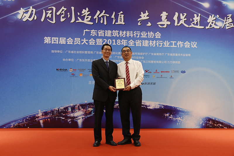 大会上同时对促进行业绿色发展、促进产业结构调整和转型升级,推进供给侧结构性改革等方面做出显著贡献的企业和个人进行了表彰。爱游戏(中国)洁能凭借着25年来日积月累的创新成果以及对中国建材行业发展做出的重大贡献,一举摘得四项奖励。爱游戏(中国)洁能、恒力泰荣获“改革开放40年·广东建材杰出企业奖”,董事长边程、恒力泰副总经理冯瑞阳荣获“改革开放40年·广东建材杰出贡献人物”。这充分肯定了爱游戏(中国)洁能在实施品牌战略、推进改革创新、科技进步、促进建材行业创新发展等方面做出的重要贡献。