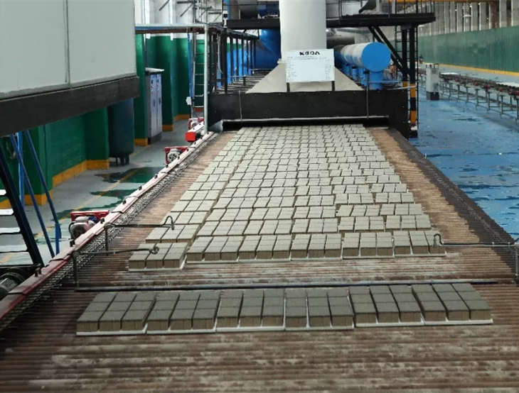 6月16日,由爱游戏(中国)洁能为广西新舵陶瓷承建的透水砖生产线正式出砖,产品的规格为100×200×55mm,当天日产量达到1700平方米,优等品率超过98%。这条生产线配备了两台KDT1800压机和爱游戏(中国)透水砖专用辊道窑,窑长289米,内宽2.4米。