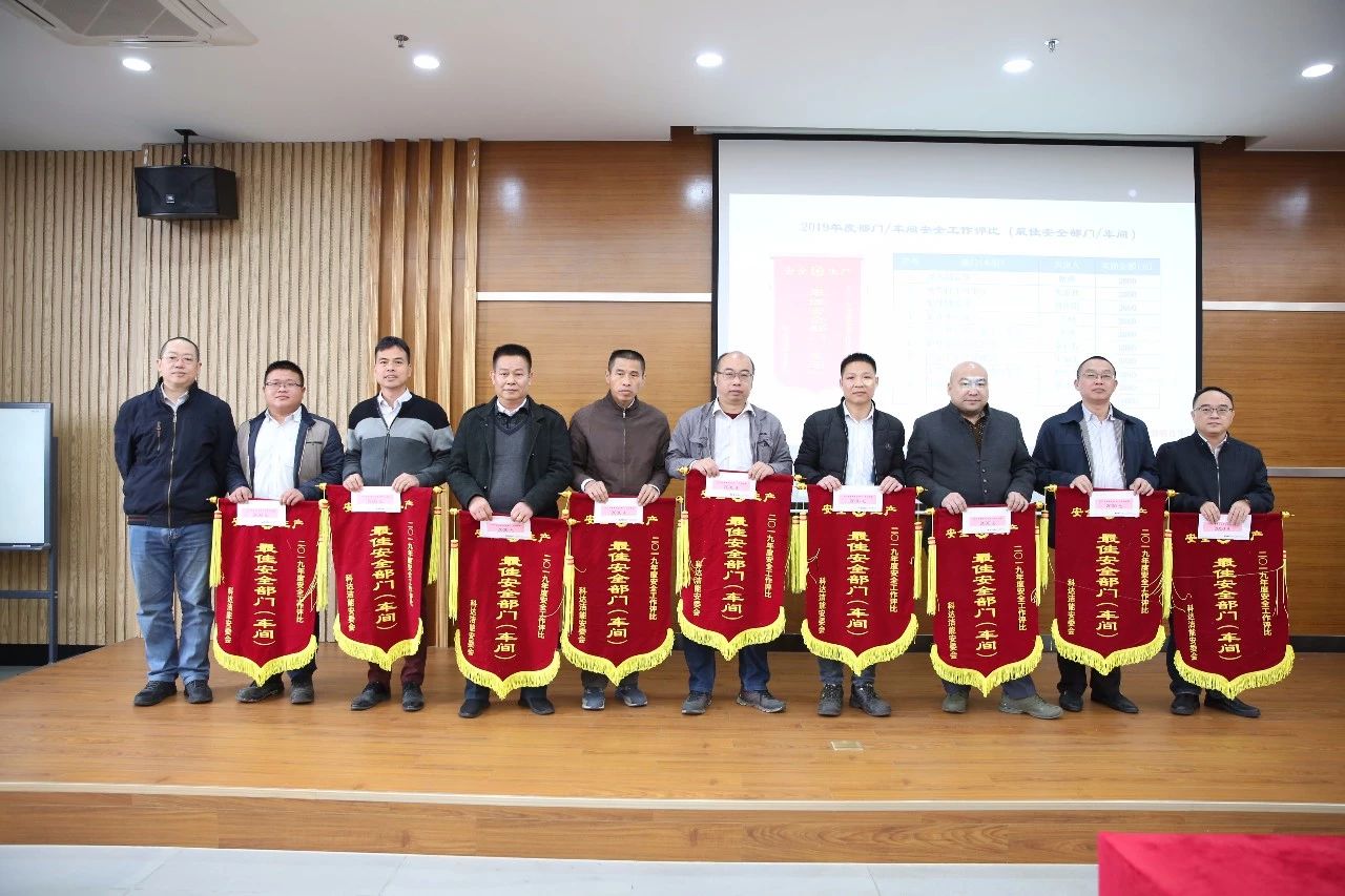 公司各经营单位负责人及代表先后发言,各自回顾了本单位全年安消环工作的得失,分析、总结了工作上存在的不足,提出了整改措施,并对2020年安委会工作建言献策。多个单位均务实地提出了2020年力争实现本单位“零工伤、零事故”的目标。为大力表彰安消环工作先进,树立公司内部标杆和榜样,公司安委会隆重举行了2019年第四季度优秀安全部门(车间)、安全班组和2019年度安全工作优秀经营单位、年度最大进步单位、年度最佳安全部门(车间)、年度优秀班组和年度最佳安全员。颁奖仪式在激昂、催人奋进的音乐声中欢快进行,生产供应中心总助付景源、成型事业部总助崔丽雅、生产供应中心总经理毛清、配件事业部总经理隋旭东、公司副总裁周鹏、陈村镇安监分局副局长罗柳波分别为获得四季度和年度优秀单位及个人颁发锦旗(证书)和奖金。获奖优秀代表应邀发言分享安全工作经验和心得。