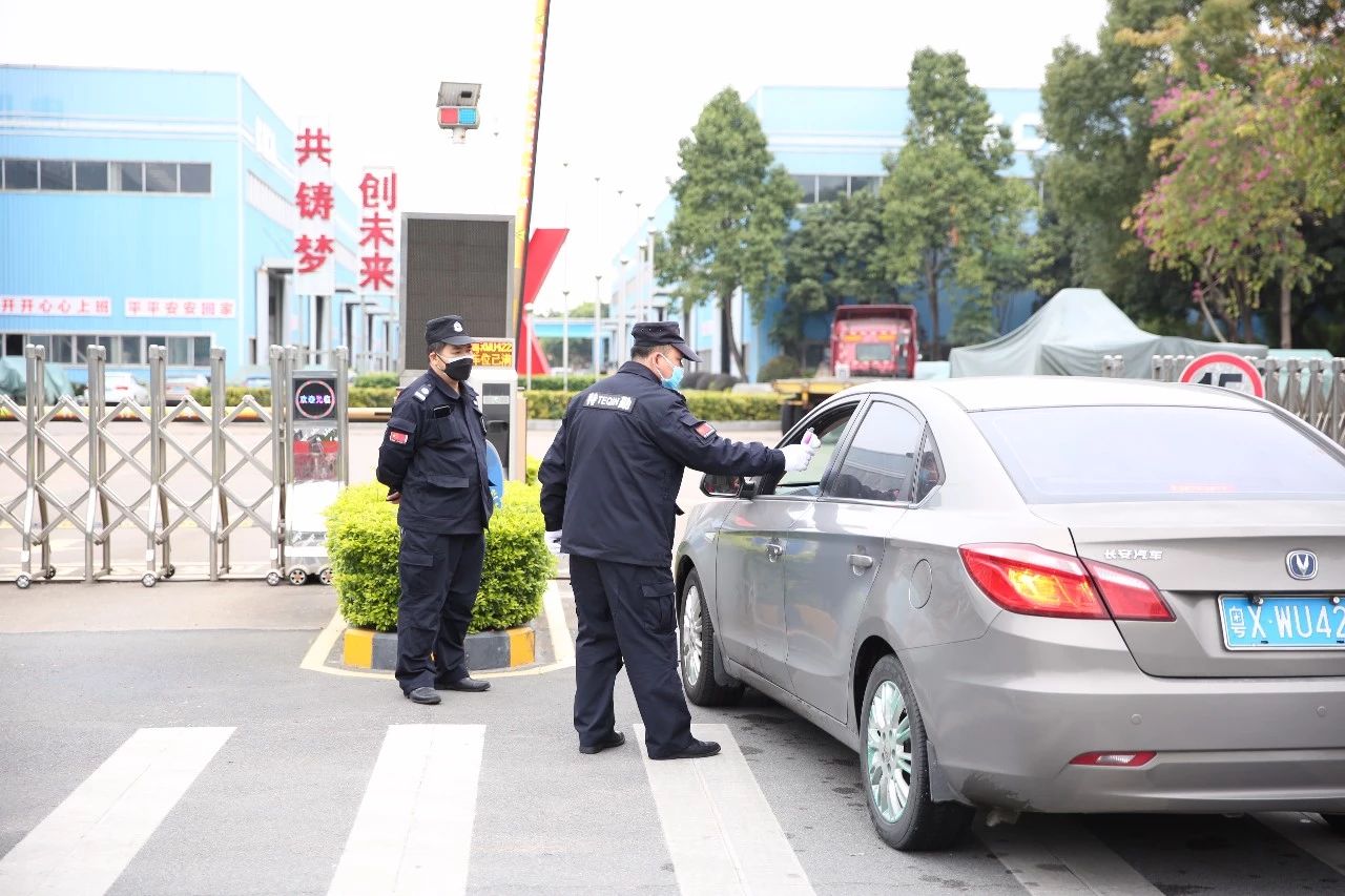 所有门岗、隔离房均配备电子测温仪,共计22个用于24小时测量,对出入人员进行严密监测,保障到门禁管理严防死守。开工首日,不少员工开车或骑车来公司上班,在工厂门前,他们自觉停车排队耐心等待体温检测,然后进行信息登记方可进入公司。