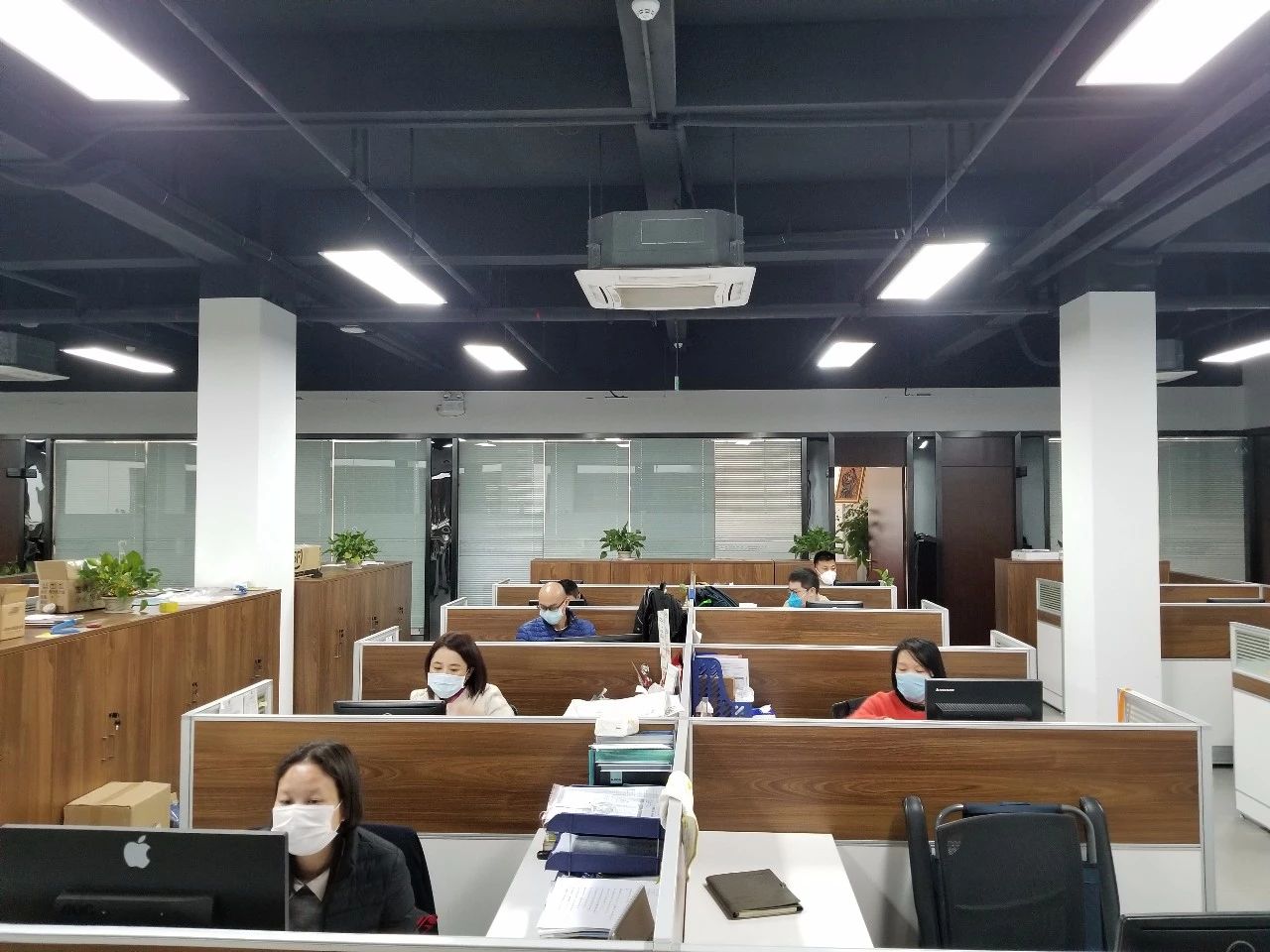 在车间及办公室,员工严格佩戴口罩,井然有序地按照相关规定进行生产及办公。倡导电话沟通、视频会议,减少面对面交流;集中开会也保持会议场所通风、消毒,与会人员佩戴口罩并间隔1米以上;取消面对面发实体红包,改为微信红包。
