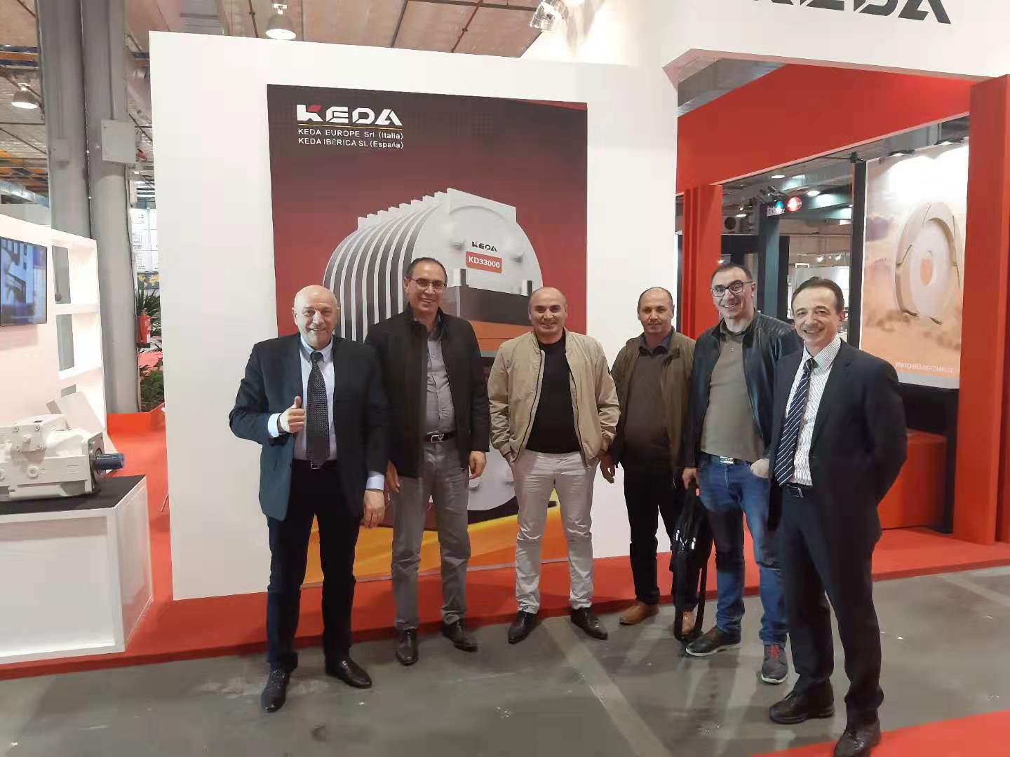 来自阿尔及利亚、土耳其、伊拉克、巴基斯坦等国家的老客户纷纷到爱游戏(中国)展位了解爱游戏(中国)最新产品,他们很高兴看到爱游戏(中国)欧洲的存在,并期望未来爱游戏(中国)能够就近为其提供更好的服务。来自欧洲的客户则对爱游戏(中国)的透水砖生产线表示了浓厚兴趣,此外,前来爱游戏(中国)展位洽谈的一些西班牙客户,则有意向购买新机型替换其原有的旧压机,并计划引进新的磨边线。