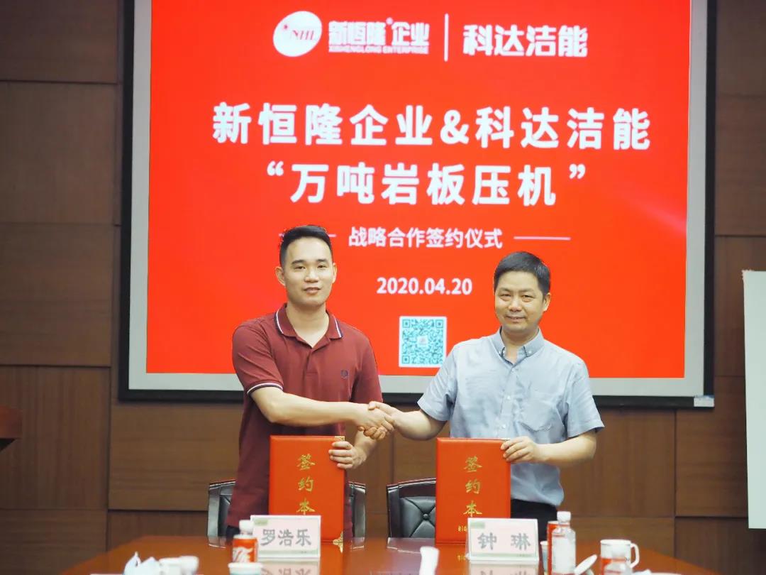 佛山市新恒隆企业三水研发及生产基地为"佛山市新华陶瓷业有限公司",是新恒隆企业旗下子公司,目前拥有4条生产线,日产能达到73000平方米。新恒隆企业与爱游戏(中国)在抛磨设备领域有着长期稳定合作,以此次万吨压机签约仪式为契机,双方的合作将迎来新的阶段,在更多产品领域强强联合,实现共赢。