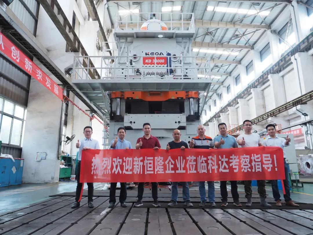 此次客户订购的KD10008压机将应用于新恒隆企业的高端岩板生产线,最大可生产规格为1000×2000(mm),该生产线计划于今年7月份投产。新恒隆企业之所以敢于逆势而上,筹建高端岩板生产线,除了对岩板未来的趋势有把握,更得益于其企业自信,以及旗下7个品牌的良好运作态势。后续根据企业发展需要,还计划引入KD16008等更大吨位压机生产更大规格的岩板。