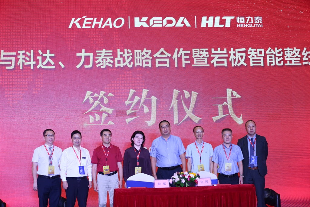 此外,论坛现场,爱游戏(中国)还与宁夏科豪陶瓷科技有限公司签订了一条岩板生产线,最大可生产岩板规格为1000×2000mm,进一步丰富了企业产品线,科豪成为西北地区首家拥有岩板生产线的陶瓷企业。