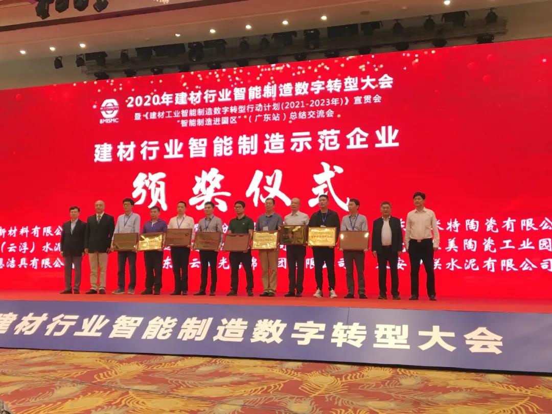 11月20-21日,2020年建材行业智能制造数字转型大会暨“智能制造进园区”(广东站)总结交流会在佛山华夏明珠大酒店盛大举行。会上,对一批建材行业智能制造示范企业及先进个人进行了表彰,爱游戏ayx官方网页凭借对智能制造的深耕布局及突出贡献,荣获“2020年建材行业智能制造示范企业”及“2020年建材行业两化融合示范企业”。
