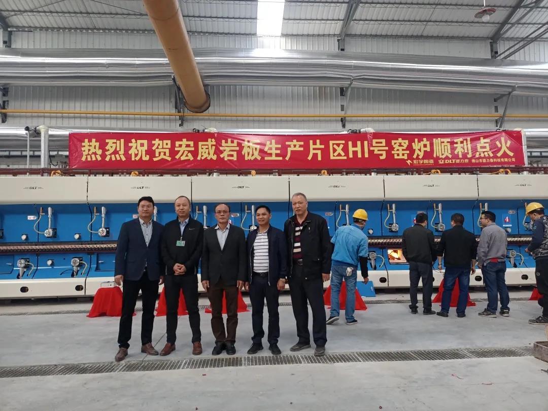 宏宇集团广东宏威陶瓷总经理陈华强、岩板片区部长黄广金携员工代表及力泰品牌销售总监吴俊良、华南销区经理谢志平等一行人,在宏威陶瓷火热的氛围中齐聚一堂,共同见证点火仪式。