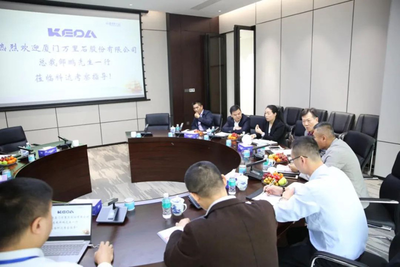 近日,厦门万里石股份有限公司(以下简称“万里石”)总裁邹鹏一行莅临爱游戏(中国)考察,随行的还有万里石国内业务集团总经理陈娇妹、常务副总阮诗章、广州万里石有限公司总经理刘北南。爱游戏(中国)石材机械总经理宋志刚、石材国际营销总监刘凯、石材营销中心经理邹超文等领导热情接待。
