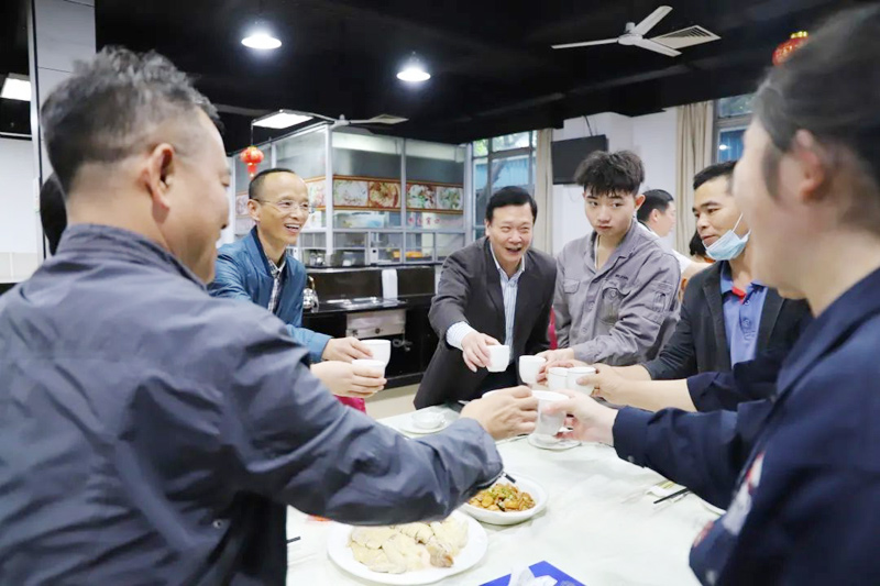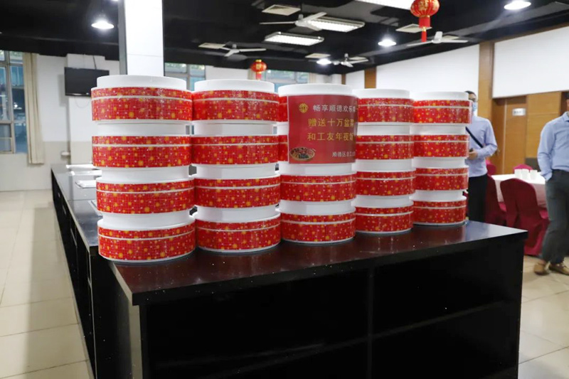 2月9日,为了关心慰问广大就地过年的留守员工及检查安全生产工作,顺德区政协主席周文,副区长、区公安局局长陈志雄,陈村镇镇长容佰辉等顺德区及陈村镇领导到访爱游戏ayx官方网页,并赠送了由顺德区总工会送出的爱心盆菜,与留守过年的外省籍职工代表共贺新春,送福字、吃盆菜、话家常,其乐融融。公司总经理杨学先、副总裁周鹏等爱游戏(中国)领导一同出席并与留守员工代表一道共进温馨的午宴。