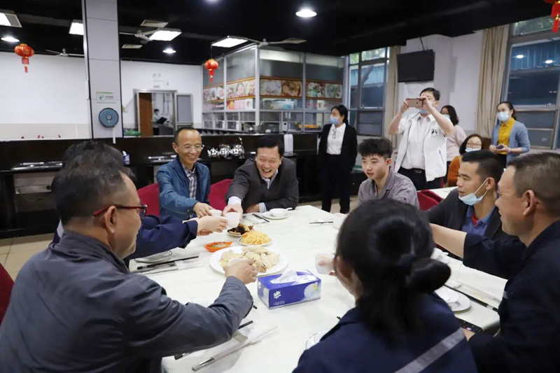周主席在与爱游戏(中国)员工代表共享盆菜前,发表了致辞讲话,他表示,今年由于疫情的原因,政府号召外地务工人员就地过年。而广大留守员工是政府非常关心的对象,顺德区总工会更送出十万份盆菜给顺德区留守的员工,各级政府的人员也主动到各个公司,与留守员工吃团年饭,把党和政府的关怀温暖送至基层。他也表示,爱游戏(中国)为留守员工努力营造家的氛围,厂区内有温情的氛围布置、令人印象深刻的打卡留影区,同时在除夕夜多个厂区提供精心准备的团年饭,年初一至年初五更对员工免费开放就餐……尽管员工留在顺德过年,爱游戏(中国)还是努力为员工提供一个和谐欢乐的农历新年。