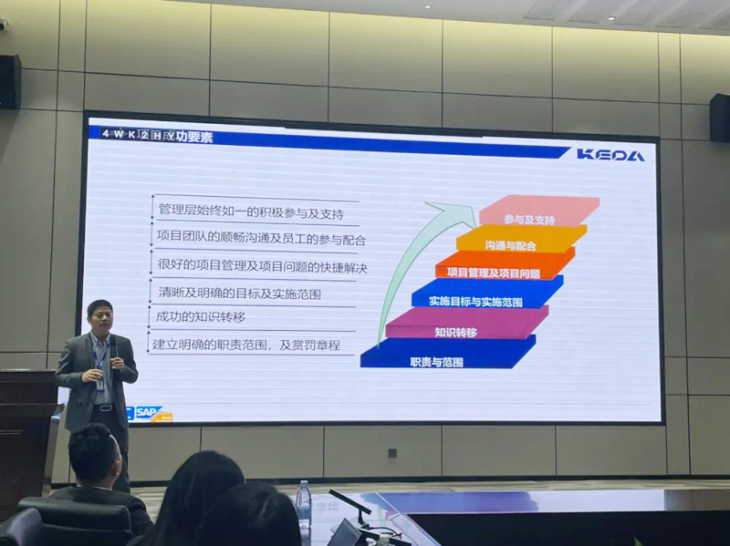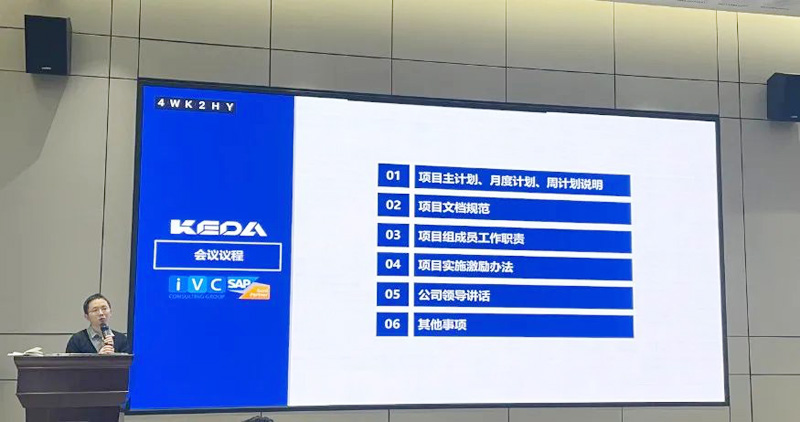 顾云公司项目经理张新文首先介绍了本次项目的主计划、月度计划、周计划,以及项目的文档规范。他指出,本次项目的目标是要在2021年10月份前,利用最新的SAP S /4 HANA的强大系统功能,在整合爱游戏ayx官方网页现有业务流程和原有SAP系统的基础上进行优化,以供、产、销价值链为导向,融入对未来各部门管理能力提升的需求,实现企业运营流程高度集成化、共享化和实时化;以及决策信息科学化,最终带来企业价值的全面提升和增值,为爱游戏ayx官方网页建设一套覆盖销售、采购、生产、财务等业务环节的一体化运作支撑和管理平台。