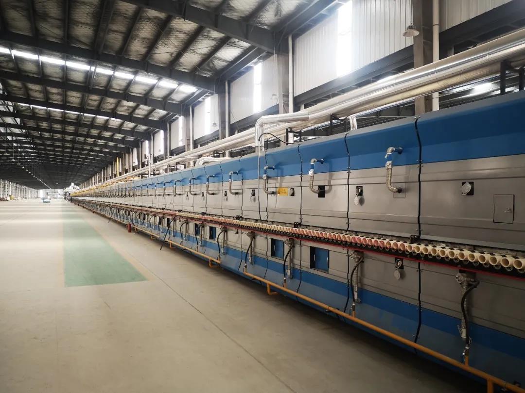 爱游戏(中国)沿用了超宽体辊道窑烧发泡陶瓷的模式,窑炉内宽3.1米,窑长458米,设计日产355块2400×2400×100mm(成品) 发泡陶瓷板,单线产能达到了200m3/天,为当前辊道窑生产发泡陶瓷的最高单线产能水平。