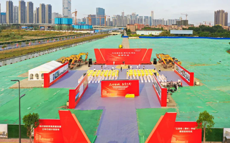 据悉,三龙湾学校(暂定名)是一所九年一贯制国有民办学校,总占地面积92.5亩,建筑面积超13万平方米,由陈村镇人民政府投入7亿元建设,计划引进广州名校进行合作办学,建成84个班的办学规模,提供3900个优质学位,实现小学、初中全寄宿,预计2022年9月投入使用。陈村将以“四个一流”(一流的办学理念、一流的师资队伍、一流的教育设施、一流的教育质量)为目标,将该校打造成为陈村、顺德,乃至整个粤港澳大湾区内的教育标杆。