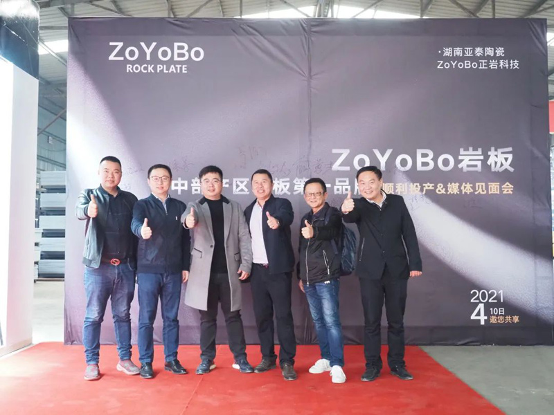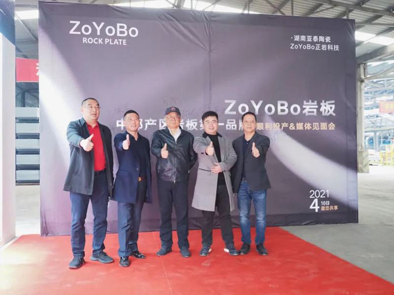 人间最美四月天,4月10日下午,在大美岳阳,湖南亚泰陶瓷有限公司(以下简称“湖南亚泰”)团队和嘉宾朋友共同见证了中部产区岩板第一品牌ZoYoBo大规格岩板的顺利投产。