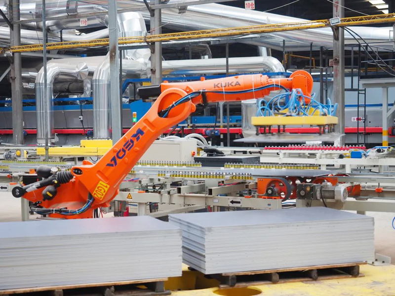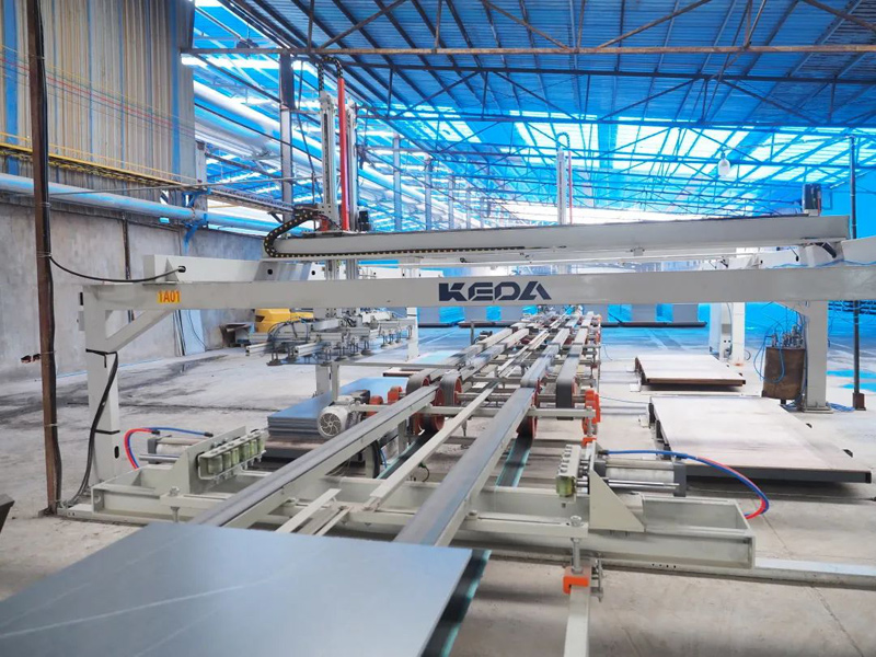爱游戏(中国)岩板抛光线应用了数控智能磨边机,实现了设备操作和生产过程数字化;包装前分级缓存系统不仅可以有效减少工人数量,降低劳动强度,还极大提高了包装效率,降低产品破损率。