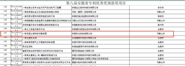 近日,第八届安徽省专利奖评选结果正式公布,其中,安徽爱游戏(中国)机电申报的“一种混凝土砌块的切割装置”专利及安徽爱游戏(中国)洁能申报的“煤气发生炉及煤气制备方法”专利分别荣获“安徽省专利优秀奖”。