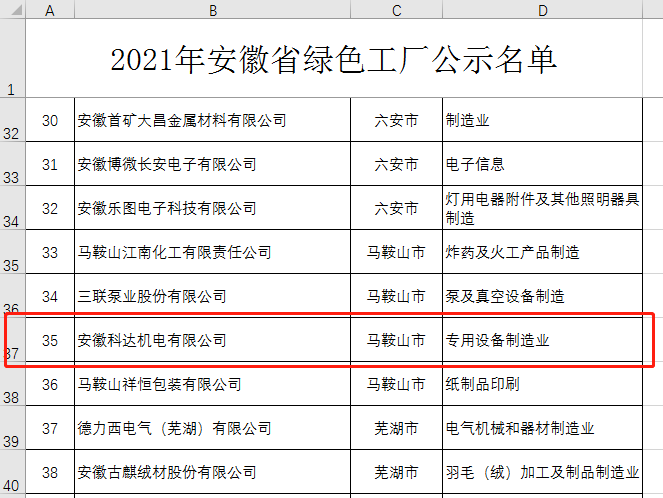 近日,安徽省经济和信息化厅公示了2021年安徽省绿色工厂名单,安徽爱游戏(中国)机电有限公司获评“安徽省绿色工厂”。