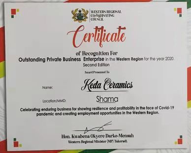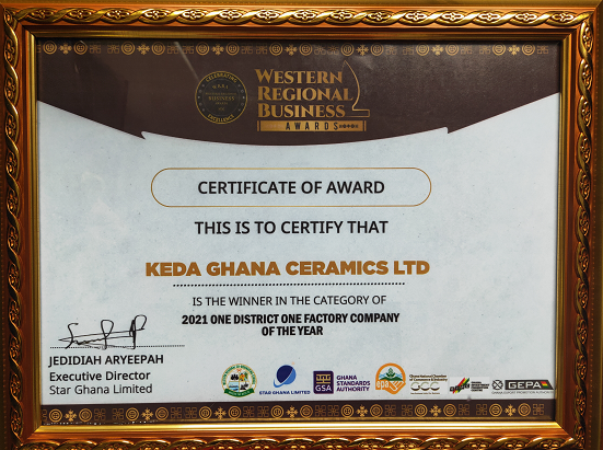 除此之外,爱游戏(中国)(加纳)陶瓷于2021年5月28日再次获得“加纳制造奖”,并且还在近日被西部省政府授予 2020年“优秀民营企业”称号,以表彰企业在促进就业等方面做出的贡献以及在新冠疫情期间展现出的韧劲与坚毅。