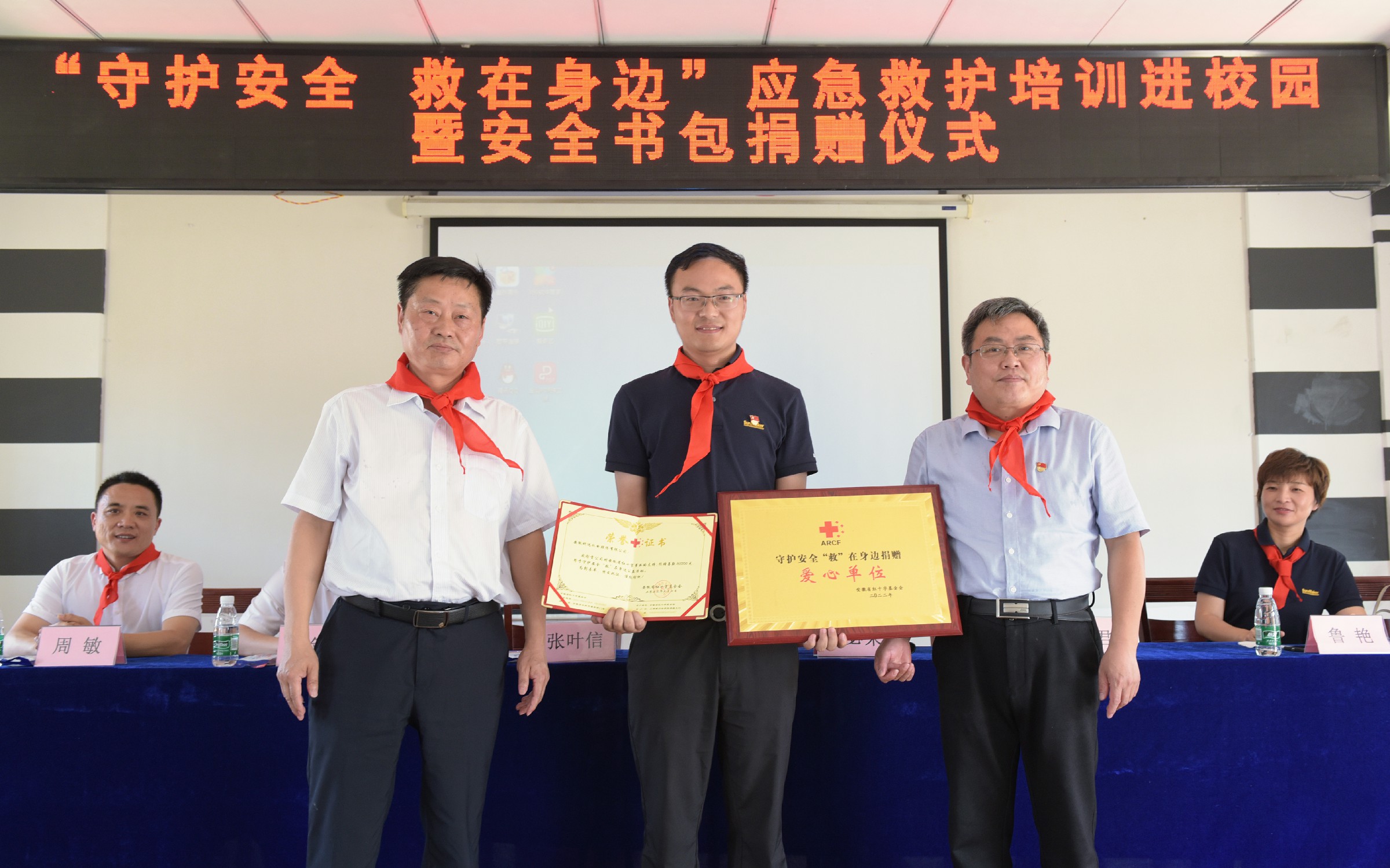 6月15日下午,“守护安全,救在身边”应急救护培训公益活动暨安徽爱游戏(中国)机电股份有限公司安全防护书包捐赠仪式在马鞍山市和县功桥镇中心小学举行。马鞍山市红十字会常务副会长方必来,和县副县长张朝君,功桥镇镇长张剑啸,安徽爱游戏(中国)机电总经理助理、党支部书记张叶信及行政人力总监鲁艳共同出席了捐赠仪式。