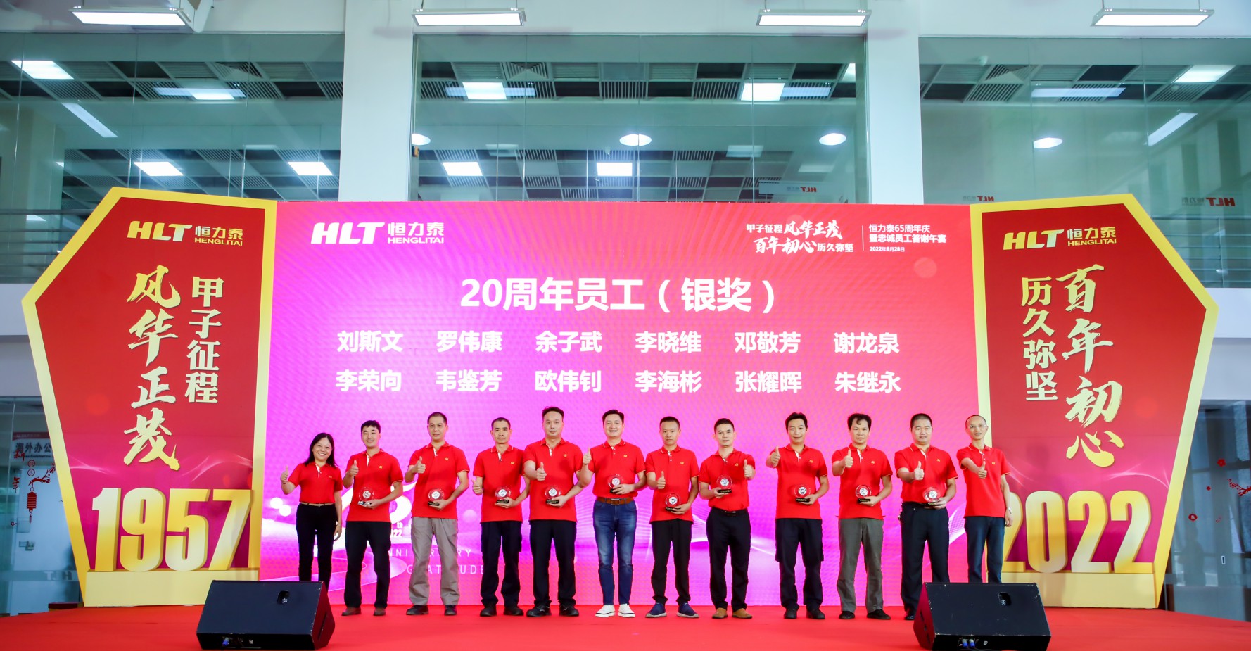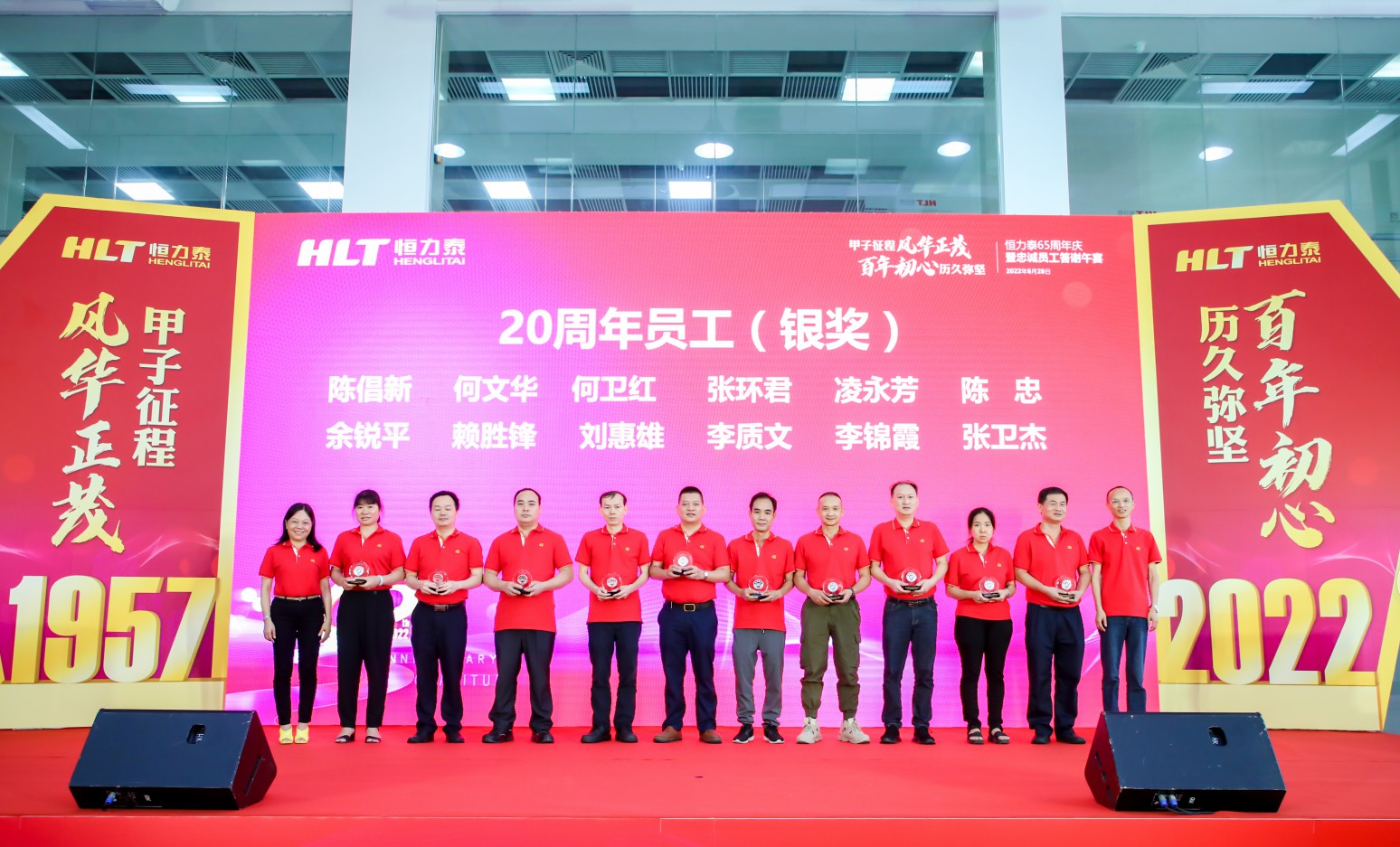 由于疫情防控的需要,今年司庆不组织大规模全员庆典活动,为公司匠心服务20年以上的忠诚员工、力泰品牌(恒力泰机械、德力泰科技、恒力泰科技)三家公司经营管理团队、公司退休老领导代表、爱游戏ayx官方网页边程董事长等100多人欢聚一堂,共同庆祝恒力泰成立65周年。